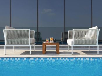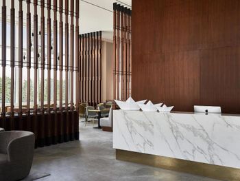 Интерьер современный, очень лаконичный. Завтраки немного однообразны, но услуга завтрак в номер очень удобна. Бассейн маленький.