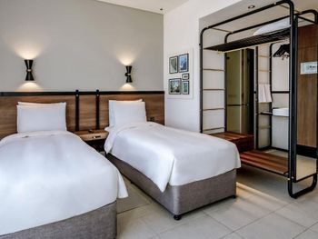 Шикарный новый отель! Потрясающие разнообразные завтраки. Только ресторан маловат, некоторым людям пришлось ждать пока освободятся столики. Номера просторные, мы жили на 12 этаже, вид красивый, вокруг много стройки, но ничего не слышно, полная тишина! Оригинальный шкаф и расположение душевой отдельно от туалета. Нам все понравилось и недалеко от аэропорта! На крыше бассейн и спортивный зал.