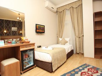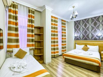 Небольшие но комфортные и чистые номера , с холодильником и конлиционером . Классный , очень располагающий персонал , всегда готовый помочь . Чудесная терраса на крыше с видом на море .Для любителей олдсити само то, узкие улочки, атмосфера старого города, тишина по вечерам после закрытия грандбазара и рыночный гомон с утра -, любимый район Истанбула!