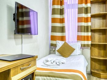 Из минусов - не хватает вывески с улицы, для упрощения поиска. В номере за 5 дней даже мусор не вынесли. Никто не убирал. Вид из окна на соседнее здание. метр до серой стены. На завтраке подавали очень-очень острые макароны, кушали каждый день вареные яйца и хлопья с молоком :)