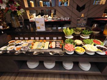Каждое утро гостям подают завтрак «шведский стол», завтрак по меню или континентальный завтрак. При Fortis Hotel Fujairah работает ресторан, где подают блюда американской кухни, блюда китайской кухни и блюда индийской кухни. По запросу для гостей приготовят вегетарианские, безлактозные и халяльные блюда.