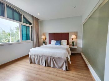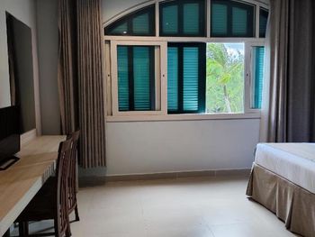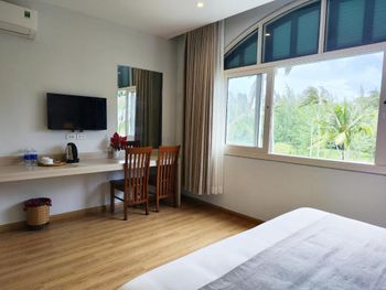 Номера просторные, отель удобно расположен рядом с Sailing Club. Всего в нескольких шагах находится красивый пляж с лежаками, вечером очень красивые закаты. Вокруг всё хорошо благоустроено и чисто. Прямо напротив отеля есть автобусная остановка, откуда можно доехать до центра города, Grand World и на север острова. До канатной дороги также легко добраться на такси по адекватным ценам. В отеле можно арендавать байк за 150 тыс донгов в день, что весьма удобно. В целом, рекомендую этот отель