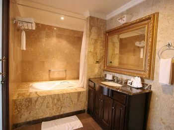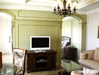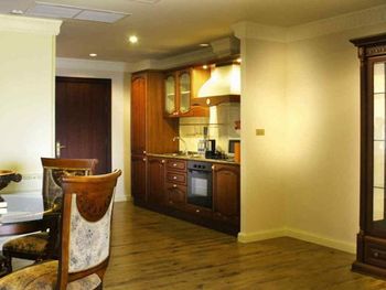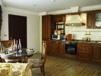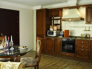 Интерьер оформленных в классическом стиле люксов дополнен деревянным полом. В просторной гостиной установлен 32-дюймовый ЖК-телевизор с кабельными каналами и DVD-плеером. В распоряжении гостей полностью оборудованная кухня с электрическим чайником и принадлежностями для чая/кофе. Также предоставляются тапочки.