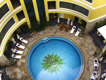 Второй раз отдыхала в этом отеле. Снова понравилось. Даже уезжать не хотелось. Красивый внутренний дворик. Бассейн. Есть лежаки и они были свободны. Нравится, что не нужно идти за полотенцем, оно уже лежит на месте. Порадовал приветственный напиток на выбор, взяла джин с тоником, прелестно. Немного разочаровал завтрак, салатик был увядший, сырок нарезан не только что. Все остальное просто супер.