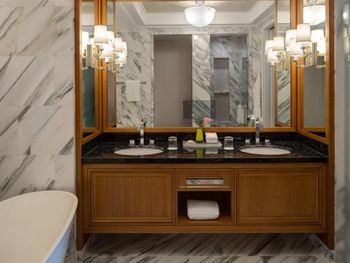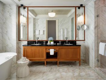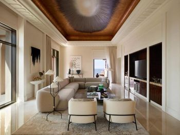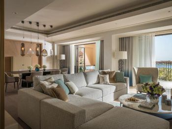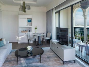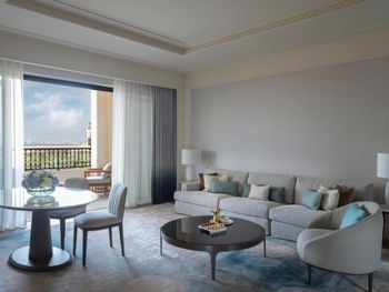 Все номера и люксы курортного отеля Four Seasons Dubai оформлены в современном стиле с элементами арабской элегантности. В числе удобств — обеденная зона и гостиный уголок, где установлен телевизор с плоским экраном. По запросу предоставляется игровая приставка PlayStation/Xbox. Светлая ванная комната с глубокой ванной, зеркалом со встроенным телевизором и отдельным тропическим душем украшена изготовленным на заказ подвесным светильником из муранского стекла.
