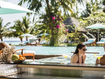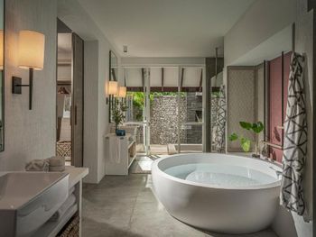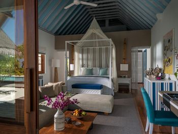 К услугам гостей наземные номера с собственным выходом на пляж, бассейном, душем на открытом воздухе и пышным собственным садом, а также виллы на воде с французскими окнами, откуда открывается панорамный вид на Индийский океан, просторной террасой для загара, душем под открытым небом и гамаками для отдыха над водой.