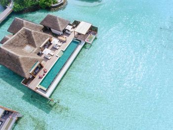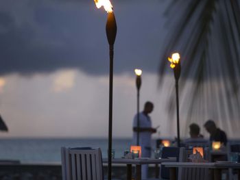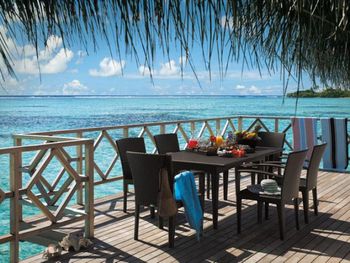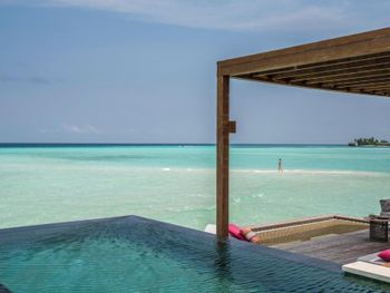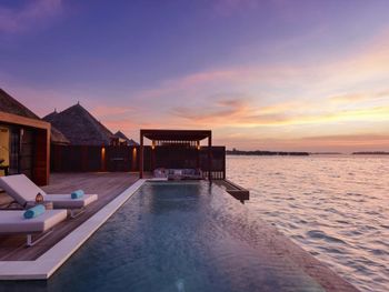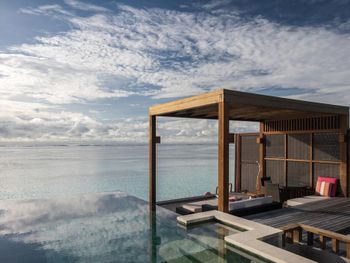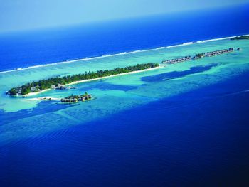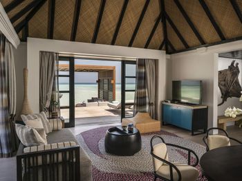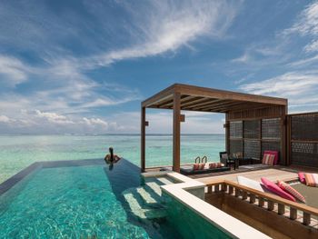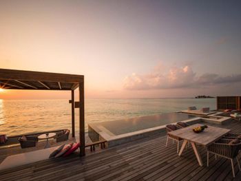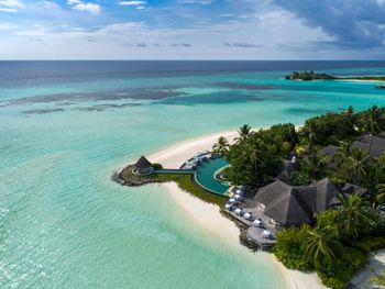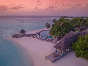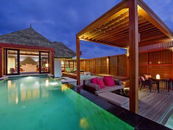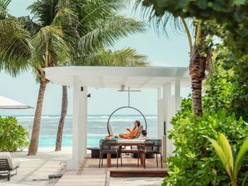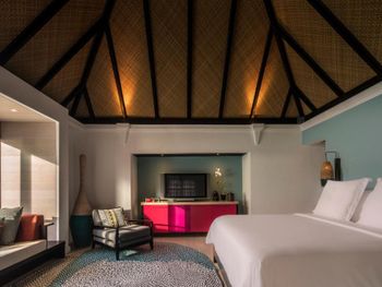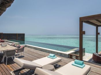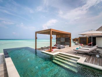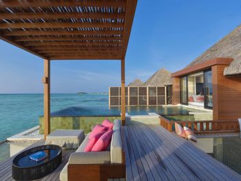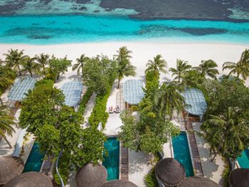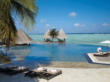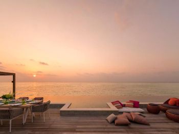 Если вы любители маленьких островов, то этот вам покажется великоват. И справа и слева от острова - другие острова, чистого горизонта нет, движение вокруг острова оживленное. Несколько раз в день на весь остров раздаются мусульманские песнопения (а в будние дни - в 6 утра). На завтраке хорошего кофе пришлось настойчиво добиваться - сначала наливали из кофе аппарата, что для отеля такого уровня не очень красиво. Имейте в виду, что классического рифа уходяшего в глубину прямо возле отеля нет - они возят куда-то на лодке (мы не ездили). Виллы на закатной стороне стоят на 50% дороже, но при этом купаться и снорклить можно только на другой стороне! На пляже лежаки могут занимать другие гости, даже прямо при выходе из вашей виллы - может быть неприятный сюрприз.