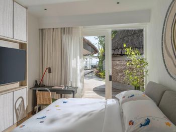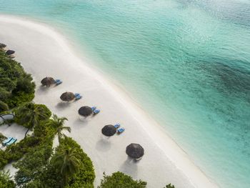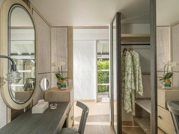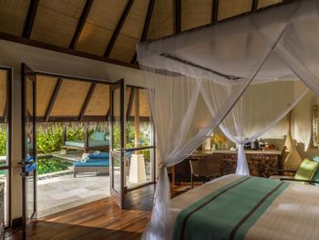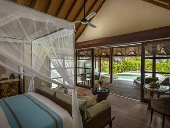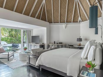 Некоторые номера окружены тропическими цветами. Из других номеров открывается завораживающий вид на океан. В числе удобств телевизор с плоским экраном, DVD-плеер, а также просторная собственная ванная комната с ванной и обустроенной зоной с мальдивским душем под открытым небом в экзотическом огороженном саду.