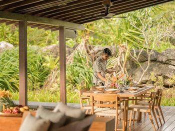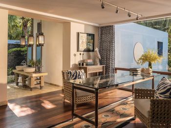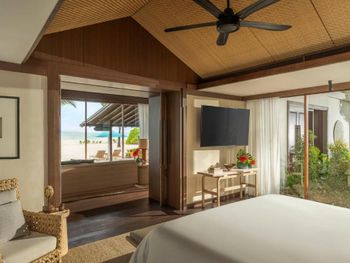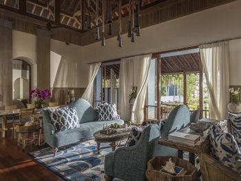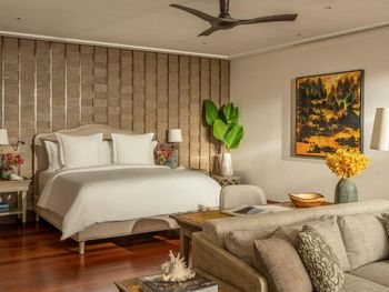 Шикарный вид, шикарный пляж, обслуживание на высоте. Очень понравился ужин на пляже, где подают свежих крабов. Нам предложили повысить номер до виллы, что мы и сделали, немного дороговато было, но это стоило того, мы не капли не пожалели. Вид из виллы обалденный на 10+ Вилла очень огромная. Очень понравилась экскурсия в манговые рощи. Обслуживание в вилле на высоте, мы покушали ночью на улице, легли спать, так они не заметно не включая свет убрались там. Красивое СПА. Кухня вкусная. Обязательно посетите этот отель.