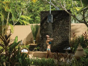 Все единицы размещения с деревянной мебелью и высоким потолком хорошо оборудованы и оформлены в малайзийском и мавританском архитектурном стиле. В числе удобств телевизор с плоским экраном и кофемашина эспрессо. Собственная ванная комната укомплектована органическими туалетно-косметическими принадлежностями и кимоно юката. В некоторых единицах размещения установлена ванна-хаммам, а в других — душ на открытом воздухе. Из окон открывается вид на сад или море.