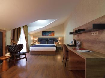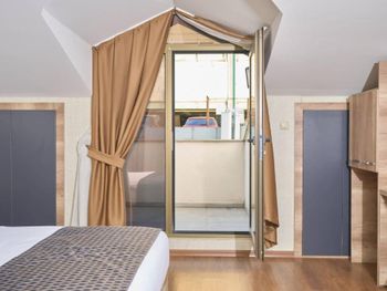 Номер оказался мансардным, потолок скошен, т.е. часть номера была ниже роста и можно удариться головой. Шумно ночью.