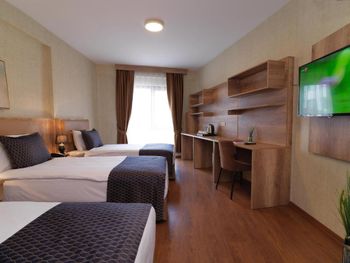 Персонал хорошии убирались в номере каждый день, минус шумно очень слышно кто с кем разговаривает в коридоре так как номер был возле ресепшена кажется и за этого шум был слышен, мы брали без завтрака, бронировала на двое взрослых мы были с мужем но кровать была раздельная на вопрос что теперь будем делать они ответили типа не знаем можем совместить кровать так как нет свободных номеров нет и это минус я бронировала кровать не раздельную, в номере не работал чайник
