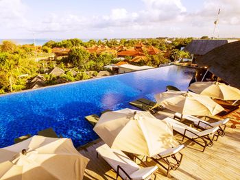Выбирали отель, чтобы было удобно добираться на разные пляжи Букита, а также можно было вечером сходить на местный пляж. В плане расположения относительно других пляжей все отлично. Что касается пляжа Джимбаран - то в начале апреля он оказался еще не убран. И отдыхать там было практически невозможно.
