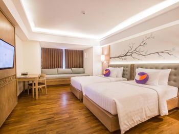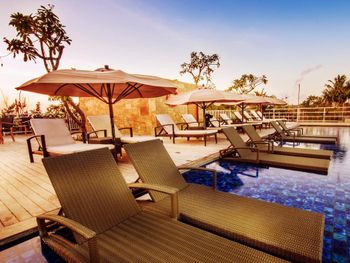 Отель не соответствует даже 2 звездам, даже на о. Бали. Номера без балкона, со сломанным кондиционером, обшарпанными номерами, плесенью и грязью в ванной. Сушить белье негде, полотенец всего две штуки на двух человек, мебель грязная, полы грязные. На верхнем этаже открытый бассейн со скользкой плиткой!!!Неужели нельзя сделать плитку такой, чтобы не было опасности убиться при входе в бассейн?