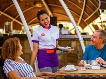 Заселили на 1,5 часа раньше, отличный бассейн и ресторан на крыше, по просьбе делали отступления от меню ( к мясу на гарнир вместо картофеля делали овощи гриль, наливали коктейли с двойным алкоголем, делали нарезку фруктов). Дают и меняют без проблем пляжные полотенца.