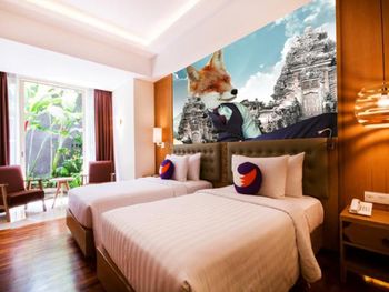 В отеле Fox в Джимбаране мы прожили порядка недели. Это хорошие 4 звезды. Большое здание в современном стиле с этническими нотами. Номера достаточно просторные, все нужное имеется. Шикарное обслуживание, уборка каждый день, чистые полотенца и расходники. Есть сейф. Постельное белье и полотенца хорошего качества. На крыше здания – прекрасный бассейн типа Infinity, отличный вид на местность, лежаки с зонтиками и бар с прохладительными напитками. На первом этаже ресторан, шведский стол, прекрасный завтрак, который можно назвать полноценным обедом. Очень достойный отель, рекомендуем.