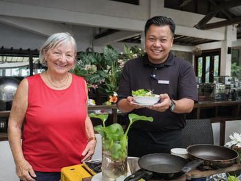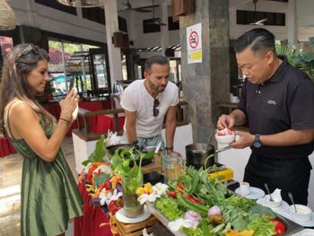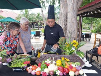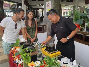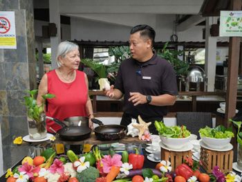 Mentari Restaurant & Bar serves local and Western cuisine, and farm-to-table dishes. Guests can enjoy the resort's signature frangipani flower tea and other healthy drinks like moringa and mulberry from their organic farm. The bar also offers refreshing and healthy beverages and delicious cocktails.