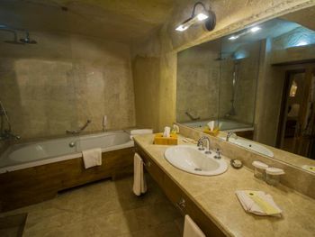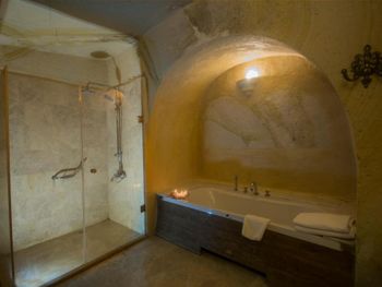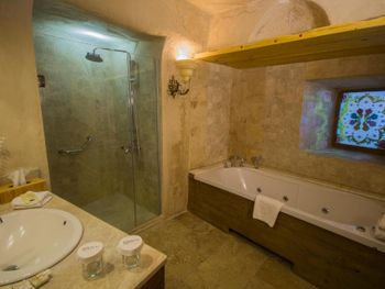 В Fresco Cave Suites Cappadocia в номерах имеется кондиционер, телевизор с плоским экраном со спутниковыми каналами и сейф. Среди прочих удобств — гостиная зона и собственная ванная комната с душем, бесплатными туалетно-косметическими принадлежностями и феном. В собственной ванной комнате есть ванна, тапочки и халаты. Гостям Fresco Cave Suites Cappadocia предоставляются постельное белье и полотенца.