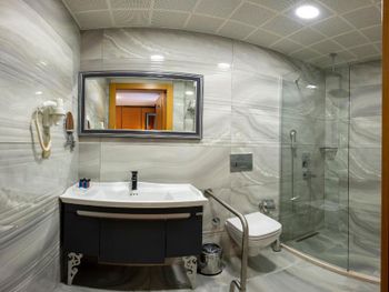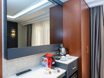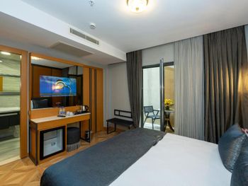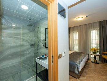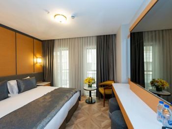 Очень приятный отель. Идеальное местоположение, рядом трамвай, метро, мармарай, автобус. Всё в паре минут хотьбы. Район удачный, так как в нем самые выгодные цены на всё: много магазинов, ларьков, выгодный курс валют; и дешевле, чем в других местах. В номерах чисто, убирают каждый день. Есть и шампуни, и бальзамы, и гели, и мыло, и тапочки, и чай, кофе. Идеаьные матрасы, спать можно вечно. Отдельное огромное спасибо девочкам горничным. Они умнечки, тактичные, милые, трудяги. Удивительно, но в номере даже при открытом окне не было слышно ни улицу ни соседей (хотя отель был заполнен). Завтрак был шведский стол очень хороший, всё как и положено (суп, оливки, сыры, овощи, фрукты, яйца, омлеты, соки, чай, кофе, десерты, колбасы). Даже если прийти в конце, вся еда будет в наличие. Нам удачно помогли с трансфером от и до аэропорта. Все русскоговорящие. Вообще спасибо за то, что мы смогли оплатить номер кэшом. Номер нормальных размеров, а то все пугают малюсенькими комнатками с большой душевой. Всё красиво оформлено везде. В отеле есть бассейн с чистой водой