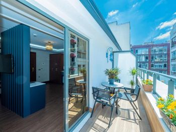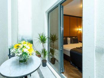 Район очень шумный, берите с собой беруши. Номер был небольшим, приходилось перешагивать через чемодан, чтобы попасть на балкон. Плохой кофе на завтрак.