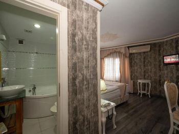 Среди удобств Fuat Bey Palace Hotel & Suites — гостиная зона с телевизором с плоским экраном и собственная ванная комната с бесплатными туалетно-косметическими принадлежностями, душем и феном. Также есть мини-бар и чайник.