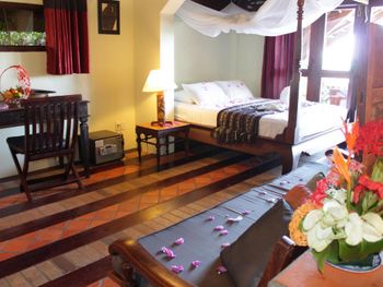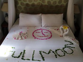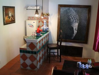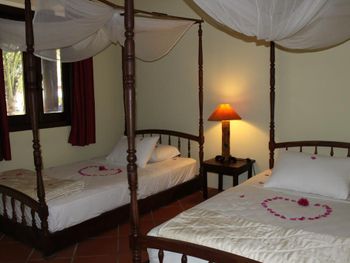 Разместились с семьёй в 2-х уровневой вилле. Просторная. Есть холодильник, чей, кофе, фрукты. Очень хороший завтрак. Отличный бассейн. Есть бесплатный трансфер до второго отель сети. В пригороде-30 мин.от первого отеля.