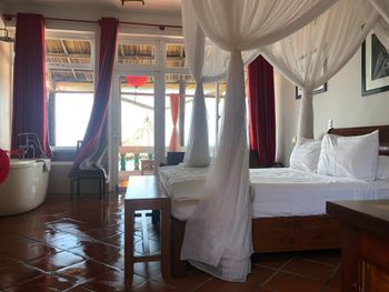 Была огромная москитная сетка над кроватью, а это значит - можно спать с открытыми окнами. мы жили в си вью рум, засыпали под шум волн. Рядом jibe, рядом joes cafe, что удобно для целей потусить немного вечером/перекусить/попить кофе и тп. Ночью совсем тихо, никаких там шумов с дороги, вентиляции, кондиционеров - ничего! Круглосуточный магазин тоже рядом. Единственный минус - кататься на кайте нужно ездить, но это решается арендой мопеда за 150000 донгов в день. что примерно 7 долларов. прекрасные завтраки для этой цены. Персонал просто сказка. Вобщем, если основные задачи - тихо, комфортно, в центре и за умеренные деньги - прекрасный вариант.