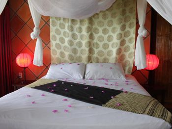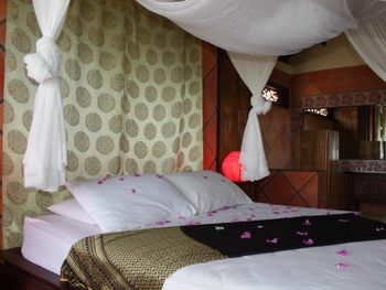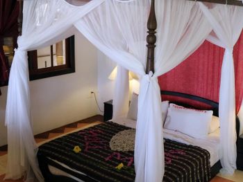 Вилла расположена рядом с дорогой и шумно, спать тяжело. на втором этаже соломенная крыша, что тоже не способствует шумоизоляции. Много москитов, даже при наличие сеток и балдахинов обглодали всё и всех. Не помогало ничего! Зуд очень сильный, долго не проходит. Нет пляжа. С пляжами вообще какая то странная история - везде огромные мешки с песком. Наверное берег укрепляют, но вид портит сильно.