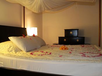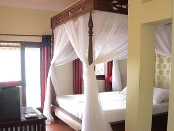При заселении в номере стояла аромо-лампа. У меня сразу от запаха заболела голова. Попросили убрать. Но видимо это была защита от комаров, поэтому в последствии пришлось купить фумигатор.