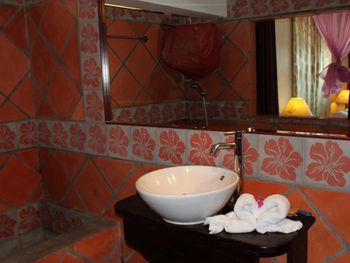 Несмотря на расположение, пляжа по сути нет. Выход в воду ограничен брезентовыми мешками - волнорезами. Ближайший песчаный пляж в 1.5 км. Отель аккуратный, но всё просит ремонта и обновления. В номере слабое освещение в ванной комнате.