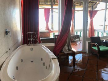Удобное расположение на берегу моря, на возвышении. Красивый вид на море и на рассвет. Вкусный, сытный завтрак. Номер был на 1м этаже, имел 2 выхода - к бассейну и к морю (к лежакам). Около второго выхода - стол и стулья - очень приятно наслаждаться фруктами и шумом моря. Номер просматривается насквозь от зеркала в ванной до окна, выходящего на море.