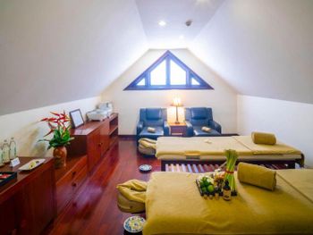 Guests can rejuvenate with traditional spa therapies, healing massages, and a variety of beauty treatments. The freshwater outdoor swimming pool provides the perfect setting for relaxation under tropical greenery.