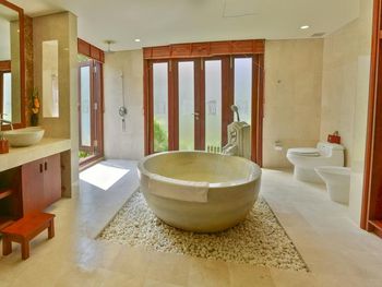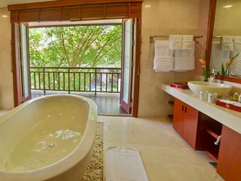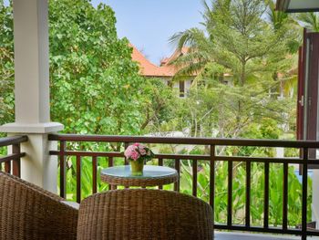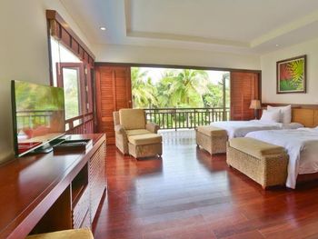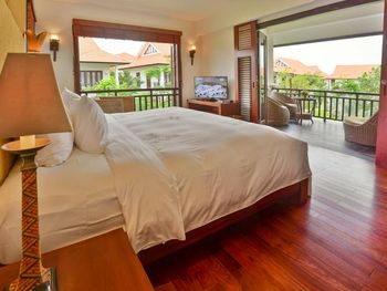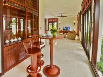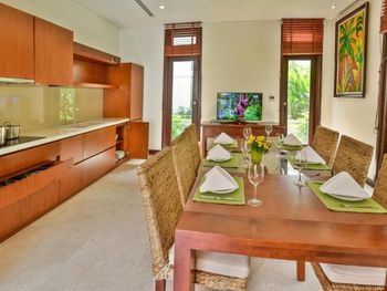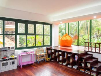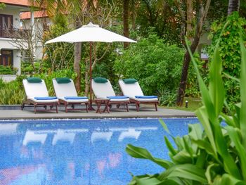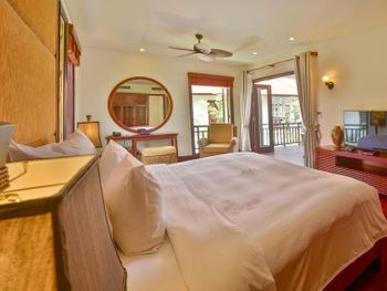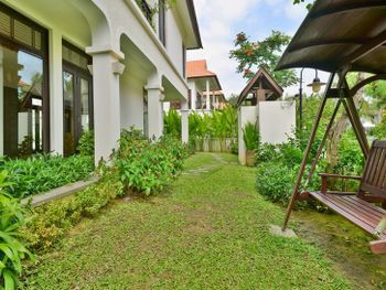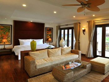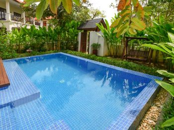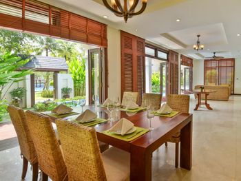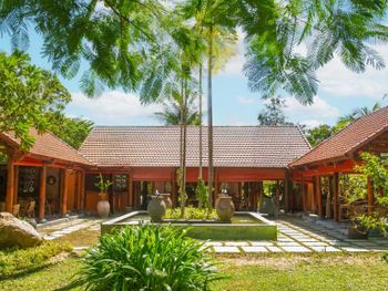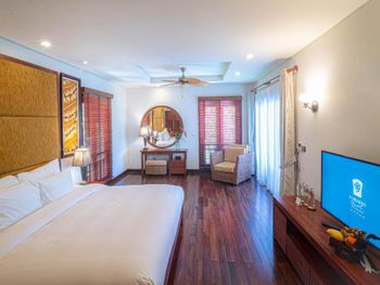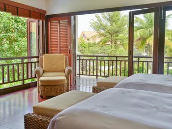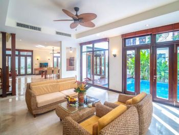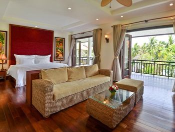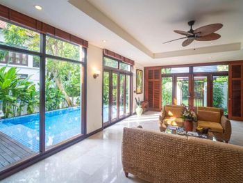 Заселили в виллу большего размера. Удовлетворили запрос на ранний заезд. Приняли оплату наличными. Зеленая территория, как в джунглях. Тень, ветерок. Чистый большой бассейн. Удобная система кондиционирования - разделена на зоны в кухне госнинной. Можно включать в одной зоне находится в другой, при этом воздух охлаждается везде. Сотрудники отзывчивые - запрашивали середство от комаров - все доставляется на виллу в течении 10-15 минут. Готовы помочь с вызовом такси или разобраться с вызванным через граб - у нас было что водитель ждал нас не у ресепшена, молодой человек помог - позвонил водителю и объяснил куда приехать (умничка). Дворецкий тоже очень приветлив. Вкусный фо бо на завтрак. Европейские блюда присутствуют, фрукты и йогурты есть. Не голодали )