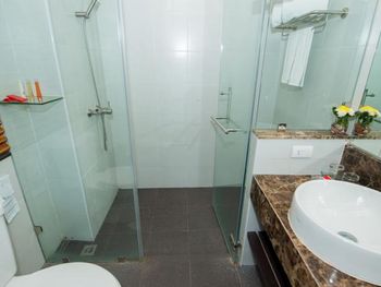 Бронировала улучшенный номер,где были заявлены из принадлежностей халат и тапочки,в номере при заселении не оказалось,принесли после требования,очень много пыли,уборка в номере поверхностная,номер требует ремонта,старый кондиционер,очень шумный.
