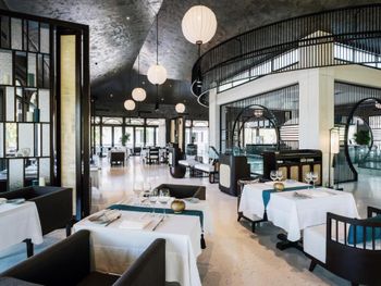 Завтрак сервируется в течение всего дня на пляже или в спа-центре. В ресторане Five подают блюда паназиатской кухни, а в баре у бассейна Fresh — блюда из морепродуктов. В лаундже Tonic можно заказать освежающие напитки.