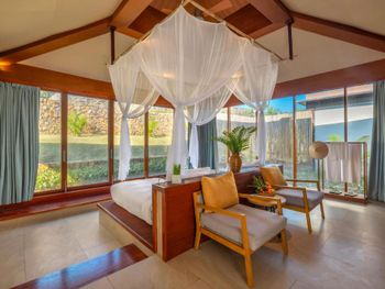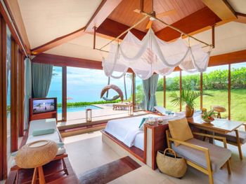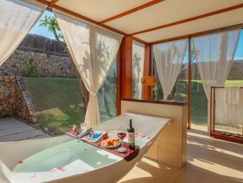 Просторные, элегантно меблированные виллы с видом на бассейн и море оснащены шкафом для одежды, телевизором с плоским экраном и сейфом. В числе удобств — гостиный уголок с диваном. В распоряжении гостей мини-бар и электрический чайник. Собственная ванная комната с подвесной ванной укомплектована феном и бесплатными туалетно-косметическими принадлежностями. Гостям предлагается услуга подготовки постели ко сну.