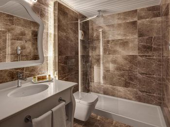 Номер не соответствует уровню 5*, максимум 3* (пошарпанная мебель, неудобная кровать, усталая сантехника)