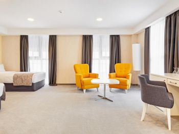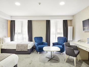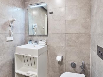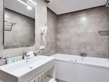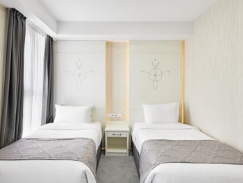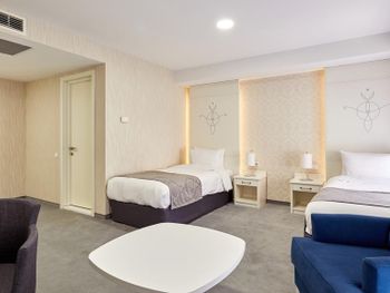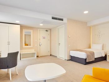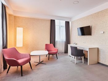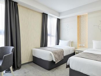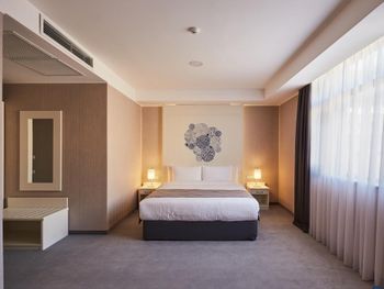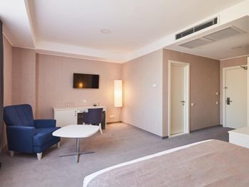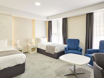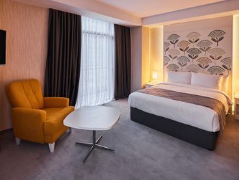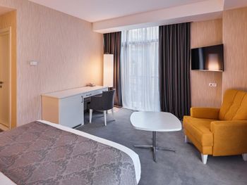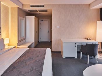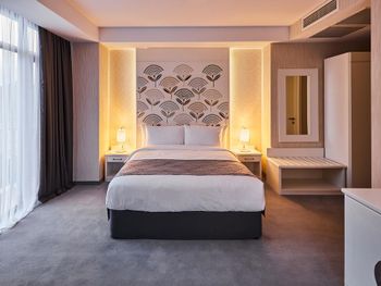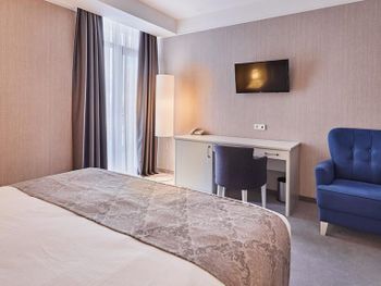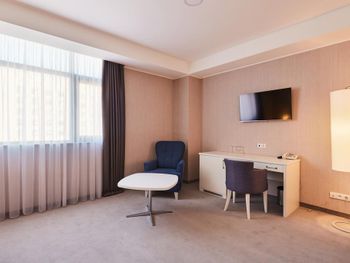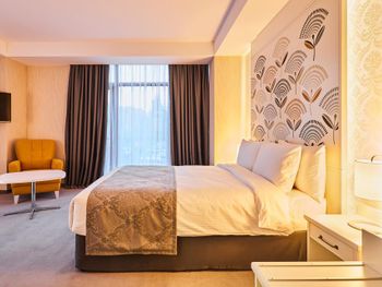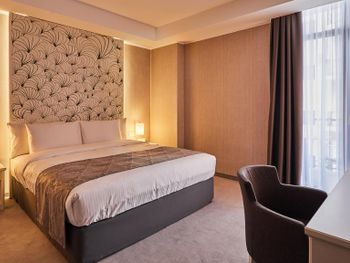 Вселялись поздним вечером после долгого перелёта. Получили ключи,сразу не проверили номер,пошли прогуляться после дороги. По возвращению обнаружили, что нет питьевой воды в номере, ни стакана, ни чая. В номере пахло хлоркой не могли понять от чего, потом увидели облитую стеклянную дверь в душевую средством с хлором, с неё и пахло по всему номеру. Весь стол и полки не протирались, проводишь ладонью по поверхности и вся рука чёрная. Апофеозом стало отсутствие пододеяльника и волосы в постели. Потом только поняли, что номер отличается от фотографий номера в букинге. Не было журнального столика с креслами. Пошли ругаться на рецепцию, после получасового ожидания и не внятных ответов от дежурной, предложили нам другой номер. Заранее нас предупредили, что в номере давно никто не жил. Серый палас в номере был в жутком состоянии,давно требующий замены. Хотели встретиться с управляющим отелем, что бы получить комментарии по всему этому кошмару, трижды подходили на рецепцию с просьбой о встрече с администрацией, но увы за 5 дней пребывания, никто не удостоился связаться с нами, одни фальшивые улыбки и заверения что с нами обязательно свяжутся. За пять ночей ни разу не менялось постельное белье и не производилась уборка номера. Пока мы не вынесли мусорные контейнеры в коридор, так бы и стояли переполнеными. Все,что обещано было при резервации(вода,чай,бар,утюг,халаты,тапочки и т.п.) за всем надо было идти на рецепцию и выпрашивать.Замену полотенцем тоже по нашему требованию,после 3 -х дней пользования. Сервис просто ужас,давно так не залетали. Отель вроде бы не старый, с хорошим оформлением, но обслуживание не соответствует уровню отеля. Хотя место расположения отеля великолепное, до метро и большого торгового центра 5 мин ходьбы, до старого города 10 минут, вообщем все в шаговой доступности. Из-за отвратительного сервиса не рекомендую этот отель.