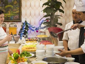 В отеле ежедневно накрывают завтрак «шведский стол». В ресторане Asian подают блюда азиатской кухни в течение всего дня. В ресторане Galliot сервируют блюда западной и азиатской кухни.