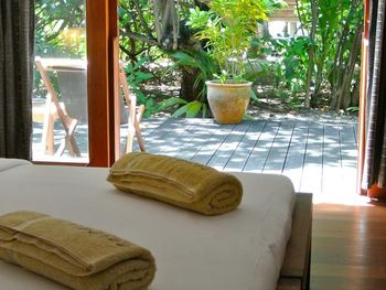 Из каждого номера можно выйти на просторную веранду. Все они оснащены кондиционером, потолочным вентилятором, холодильником и сейфом. В ванных комнатах установлен душ с горячей и холодной водой.