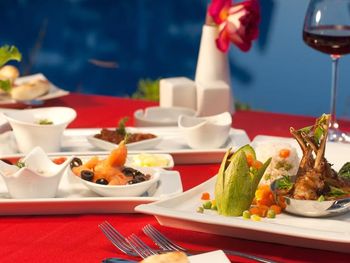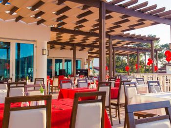 В главном ресторане отеля для гостей сервируется «шведский стол» с блюдами интернациональной кухни. Гости также могут отведать блюда из рыбы или блюда турецкой кухни в ресторанах с обслуживанием по меню. В пабе The English Pub круглосуточно подаются различные напитки.