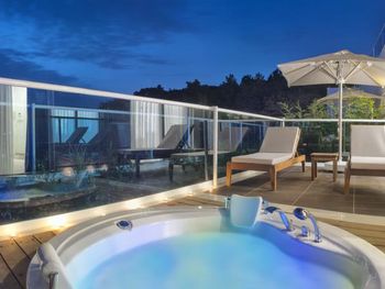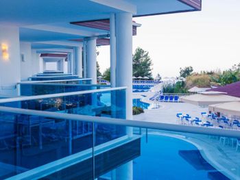 Отель красиво расположен и интересно спроектирован. Номера просторные. Кормят хорошо и разнообразно. Есть ужин (буфет). Завтрак хороший. Красивый вид на море.