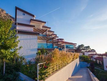 Находится в хорошем месте (если вы на машине и не привязаны к трансферам) рядом Ликийская тропа и много смотровых. Вид с террас хороший Достаточно приветливый персонал (местами)