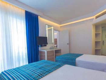 Номера уже уставшие. Шатл на пляж ходит утром в 9.30 и вечером в 16.30. В другое время добираетесь сами. Но море, на котором располагается пляж отеля больше похоже на озеро. Это совсем не тот пляж, ради которого стоит ехать в Олюдениз.