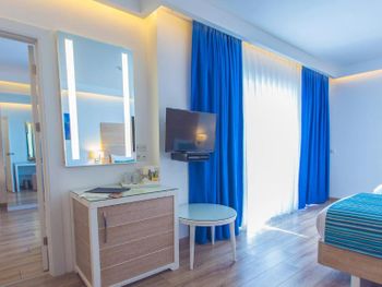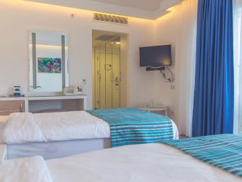 Очень-очень-очень запущенный отель. Он красивый, территория прекрасно ухожена, но всё остальное - беда. Стены прямо в номере пузырятся и покрашены сверху, то же самое во всем отеле. Плитка везде отбитая, в бассейне внутреннем плесень, грязь. Сигарету кто-то уронил, так она пролежала несколько дней. В раздевалках не работает ни один шкафчик. Персонал не улыбается совсем. Ни одной улыбки за всё время 😄. В номере - на меня несколько раз падал полотенцедержатель, потому что проржавели крепления. Воняет из канализации. Сидушка сиденья унитаза и то криво закреплена. Это ж секундное дело!!! Шкафы жутко скрипят. Убираются просто отвратительно. Ощущение, что только постель могут заправлять, остальное не дано. На полу вековая грязь, на всем остальном пыль. У меня дома столько пыли нет. Еще в отеле 5 якобы звезд бумажные стаканчики в номере и DVD плееры - не забудьте диски с собой взять 😂