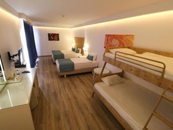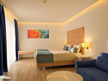 Отелю требуется ремонт, многое расшатанное, отклеилось, проржавело, плесень, посуда со сколами подается, треснутые зеркала и тд. За помещениями не ухаживают. Ощущение, что на всем экономят и ограничивают по всем услугам. Бассейны все холодные без подогрева и все не глубокие 140 см глубина. Шезлонги выцветшие и грязные. Полотенца на бассейне не дают. Водные горки работают только несколько часов в день. Пляж далеко, надо ехать мин 10 на такси или на их шатле. Шатл ходит 2 раза: туда в 10:30/11:00, а обратно в 16:00. Но до их бесплатного пляжа нужно потом еще 10 мин пешком и он ужасен. Там старые шезлонги, полотенца не выдают, вода грязная, потому что пляж находится в очень маленьком заливчике как озеро, цвет воды болотистый, на воде что-то плавает. Такой аппендикс от моря, куда все сливается. Мы не стали там оставаться и пошли на платный пляж. 100 лир вход, 750 лир шезлонг. Там хоть море чистое и шезлонги хорошие с зонтиками, есть бар и ресторан за доп плату. SPA тоже требует ремонта. Бассейн не подогреваемый, джакузи чуть теплее, но тоже для джакузи холодная вода, как комнатной температуры, а должна быть теплая. Сауна и хамам большие. Полотенца выдают, но почему-то работает комплекс только до 19:00, обычно все после ужина идут в SPA, а тут они так рано его закрывают, впервые такое. Я пришла в 17:00 и сауны уже были отключены и не грели особо, было просто немного тепло. Ключи от шкафчиков в раздевалке не выдают, только если ты покупаешь у них процедуру. Вечерней программы нет, настольные игры и бильярд. Еда не оправдала ожидания от слова совсем. Мне было не вкусно. Выбор есть, но блюда обычные, одни и те же каждый день. Брала все включено тариф. Сладостей много и овощей в остальном ничего не заинтересовало. Напитки ужасные - разбавленные водой химические соки, чай в пакетиках, дешёвая газировка. Везде мухи летают. Из фруктов только яблоки и апельсины ежедневно. Продукты низкого качества. Питание разочаровало очень.