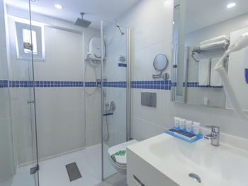Отель уставший, инженерная инфраструктура оставляет желать лучшего. В номере была сломанная лейка душа, душевая кабина подтекала, розетки еле держатся на своих местах.