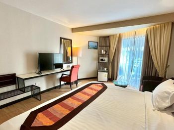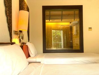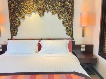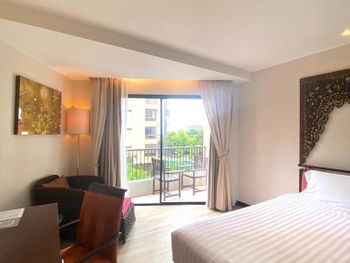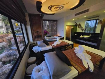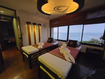 Расположение от города далеко. На сайте booking.com не правильная информация о трансфере в город. Ездят меньше и последний раз вернуться из города можно только в 19-15. Пешком ходить 2,8 км, что долго. Такси 200 бат. Если хотите много гулять в городе или закладывайте бюджет на такси или другой отель берите. Завтраки очень дорогие. Неадекватно просто. При выезде долго ждать пока посмотрят и проверят номер, это минус. Пляж очень маленький, лежаков нет, кроме 3 матрасов. Все остальное занимает соседний отель Модус. Купаться - без проблем, а вот полежать надо наверху будет.