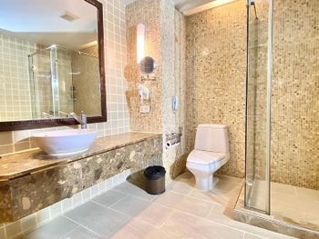 Отель требует большей чистоты и ухода. В комнатах грязно, душевая кабина вся мутная от грязи, грязные полы, отсутствие уборки на балконе! На халатах в моем номере были просто дыры! Ощущение было такое что отель заброшен, но в нем по какой то причине продолжают селить гостей, грустно. Территория отеля так же умоляет ее отчистить. Например дорога на пляж - разбитые ступени, не ухоженная растительность, нет пляжных лежаков на песке. Повсюду упавшие листья. Еще и отсутствие шатл баса, о наличии которого прописано в важных условиях. Я не могла и подумать что мой отдых в этом отеле с громким именем и 5* будет настолько унылым.