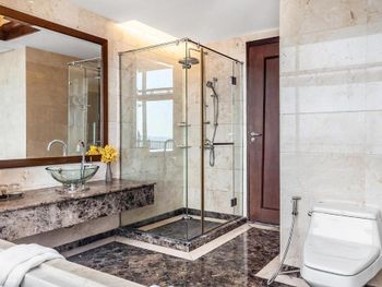 Персонал на ресепшене общается на «отвали». Не все понимаю английский на хорошем уровне, но по какой-то причине виноваты у них гости. В отеле 5* пришлось выпрашивать щетки, так их не давали (Для сравнения, в других отелях Тайланда их дают. И не только 4-5*). Не очень чисто в номерах. Особенно в глаза бросаются пятна в белой ванной.